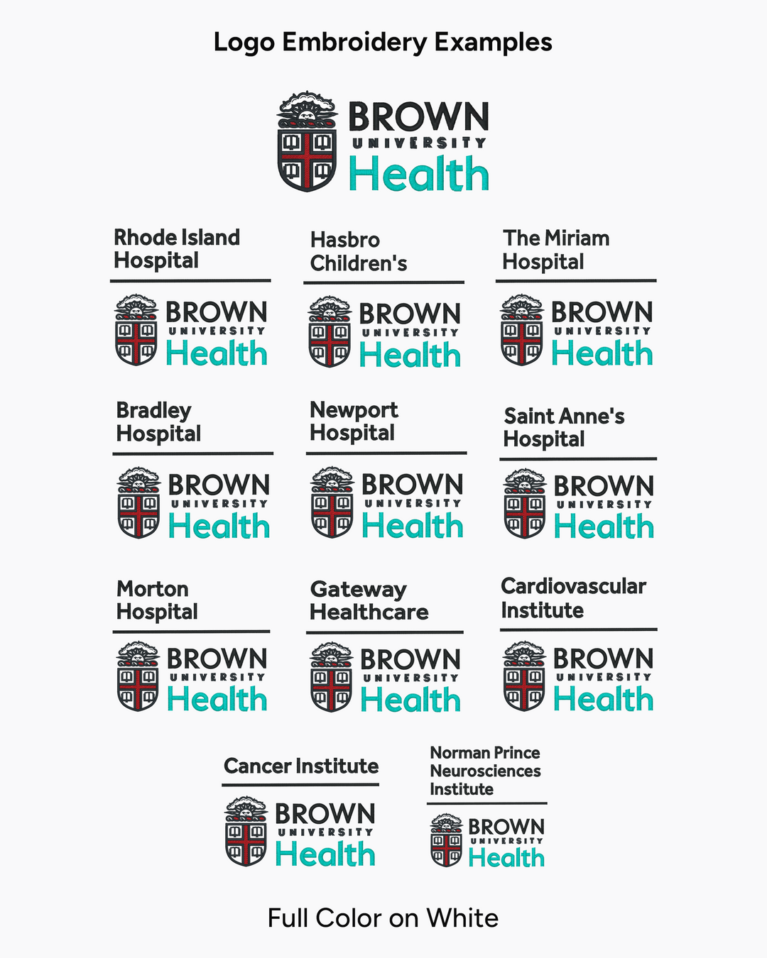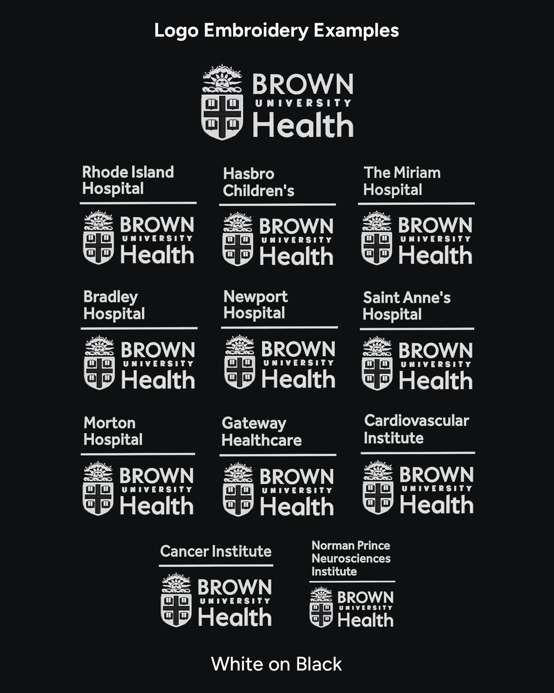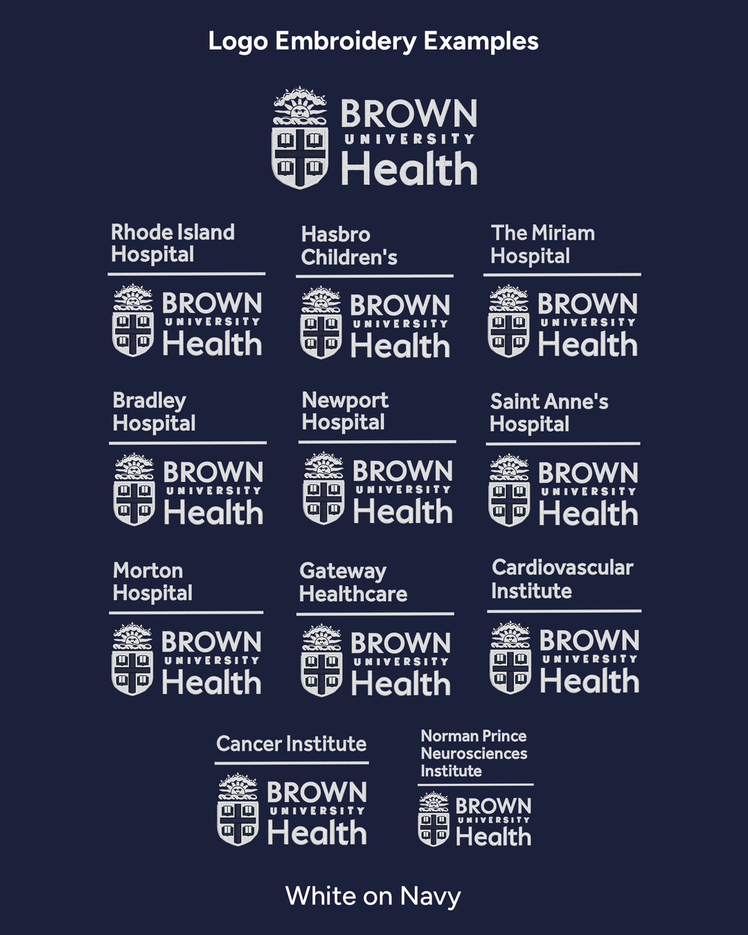 Refer to the images below for examples of the available logos and embroidery options.